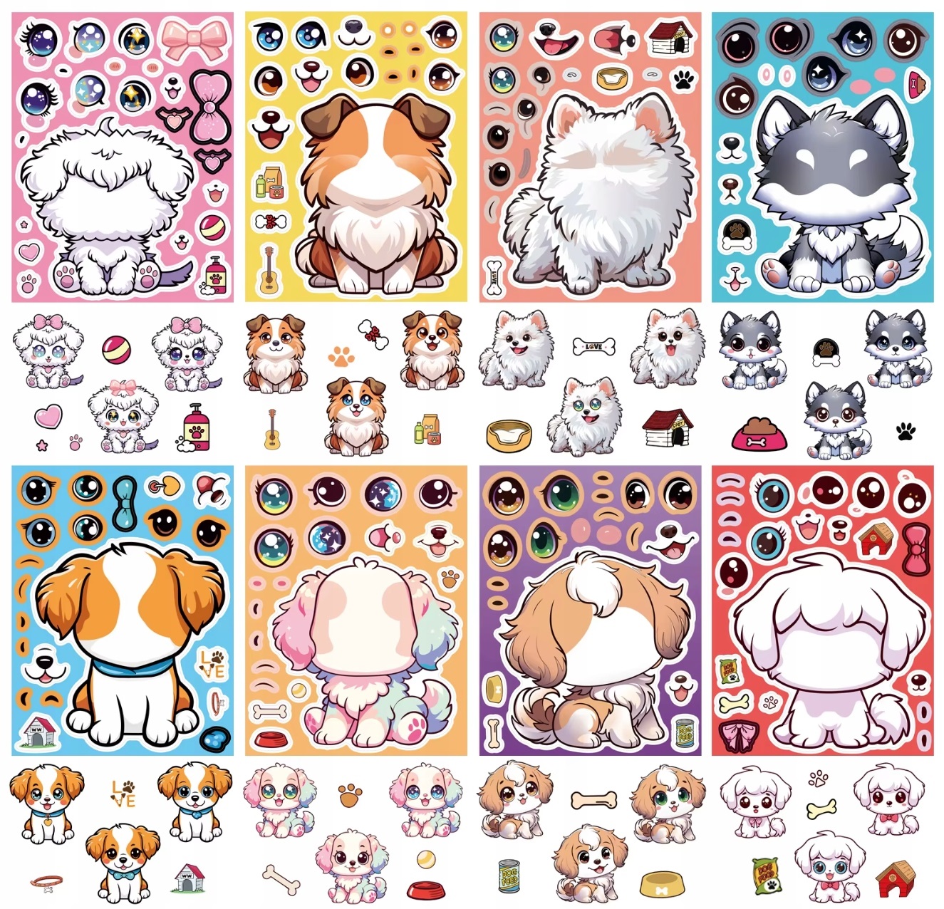 Naklejki wyklejanki mix Piesek – 8 arkuszy