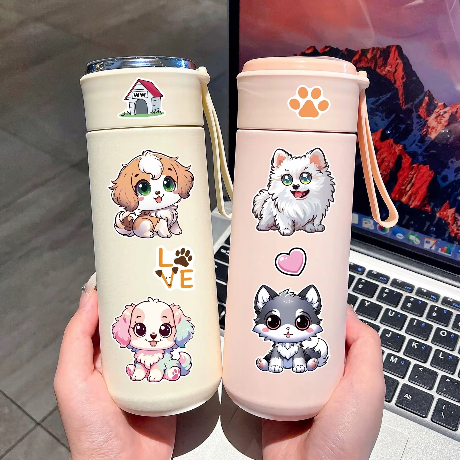Zestaw zawiera różne postacie uroczych piesków oraz mnóstwo dodatkowych elementów- oczy, buźki, kapelusze, muchy i wiele innych dekoracji.
