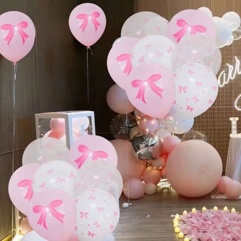⭐ Balony lateksowe różowe w kokardki- Wielkość około 30 cm – 5 sztuk
