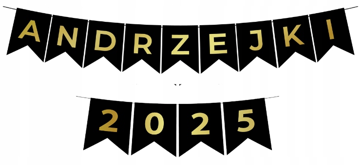 Oferujemy elegancki baner składający się z czarno-złotych flag z napisem „ANDRZEJKI 2025”.