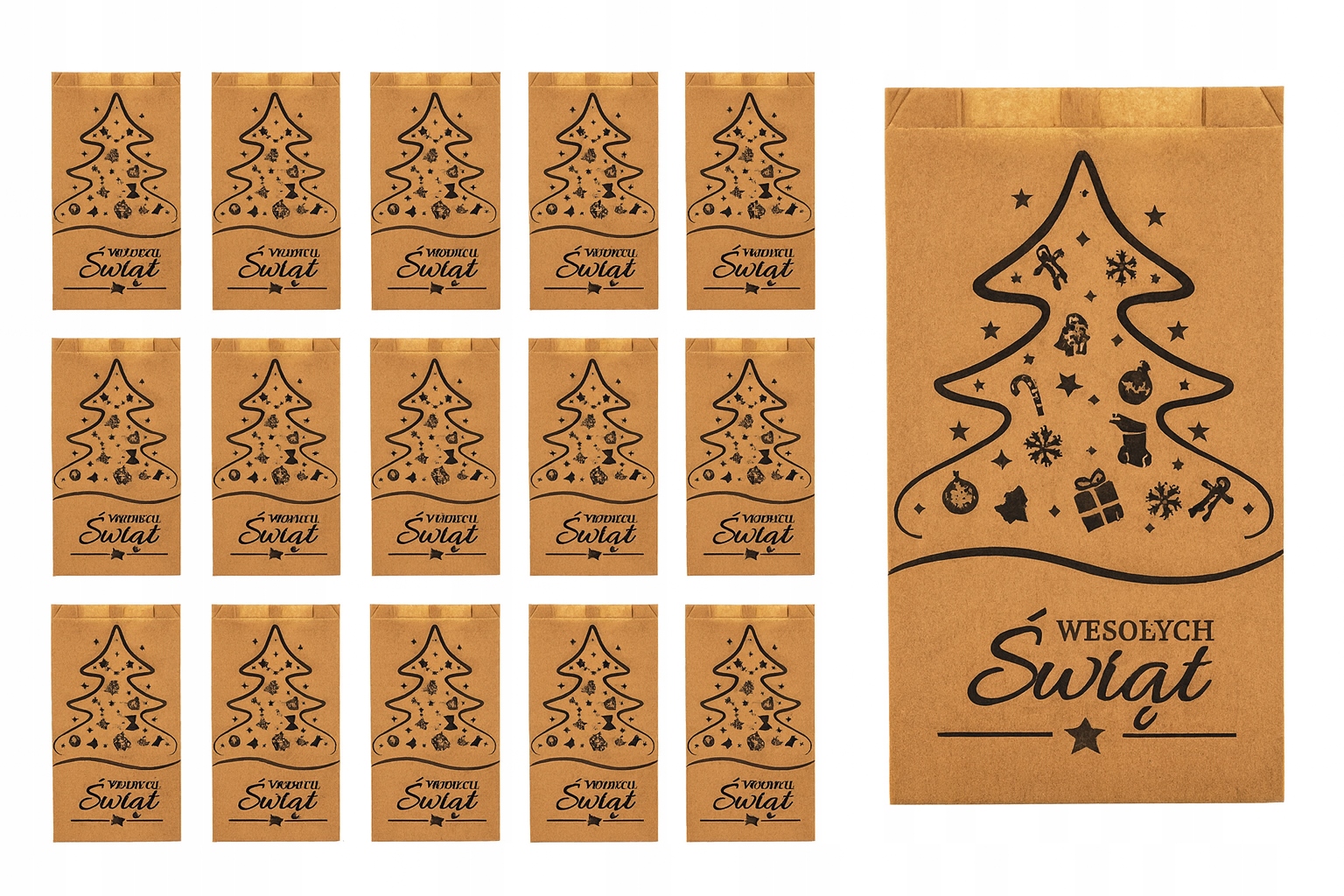 ⭐ Kolor: brązowy z nadrukiem „WESOŁYCH Świąt” i choinką