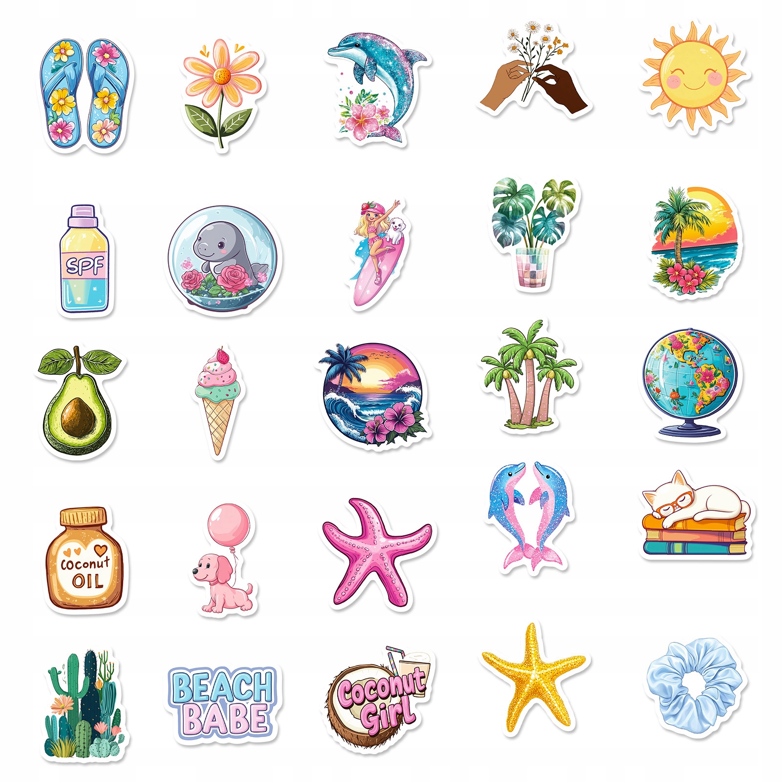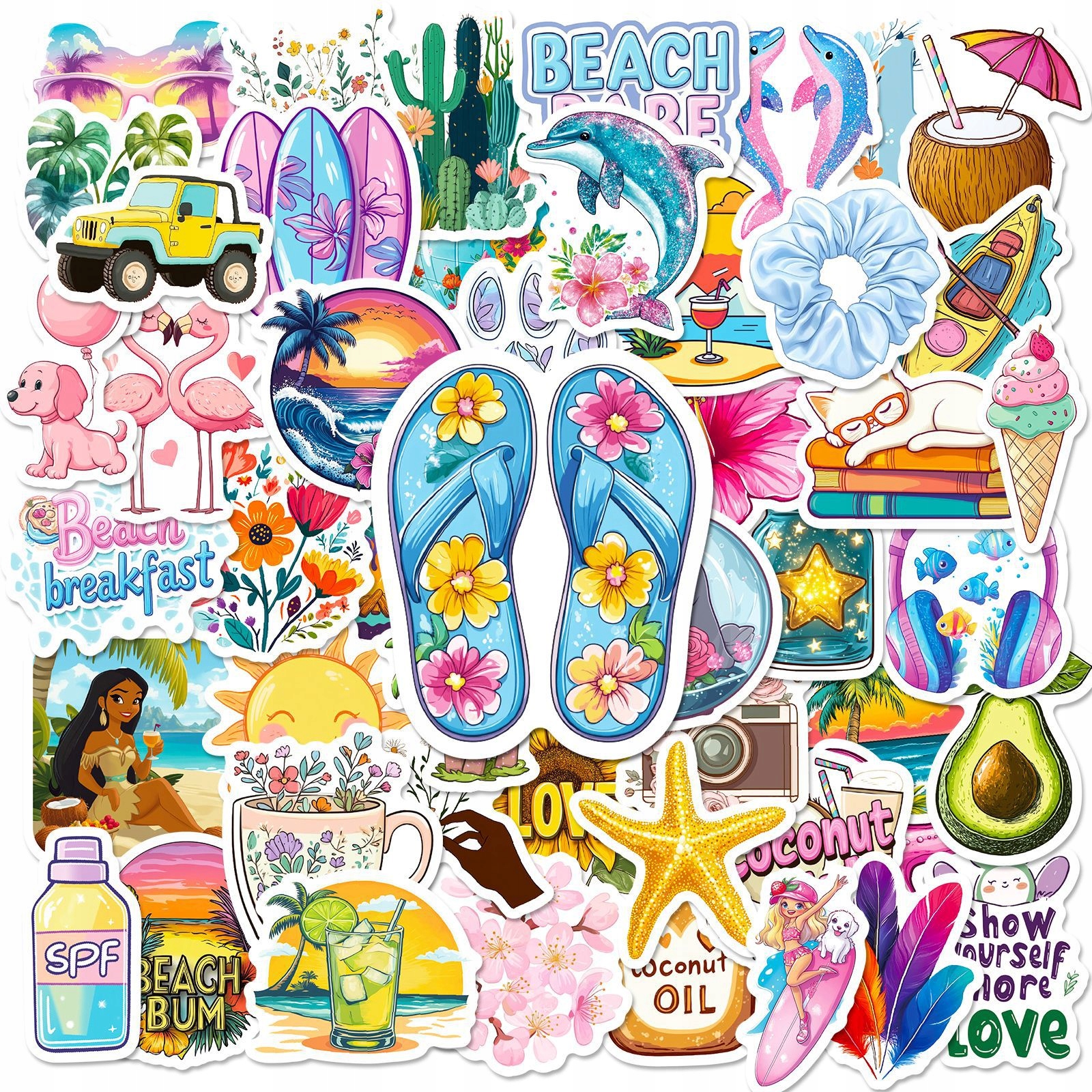 Naklejki kolorowe Aloha mix – 50 naklejek⭐ Ilość: 50 naklejek