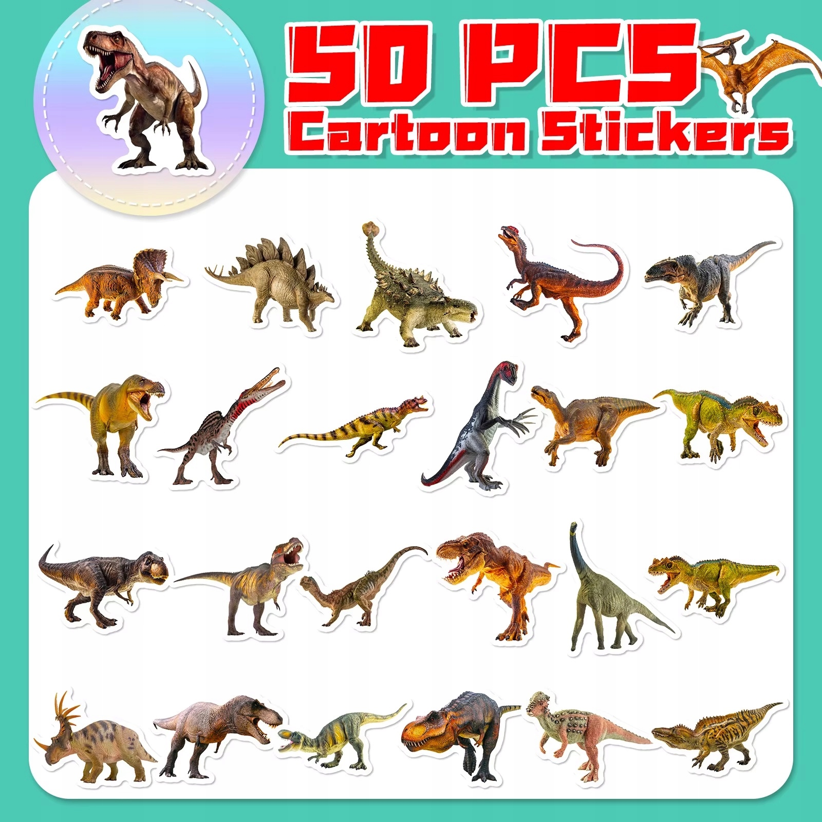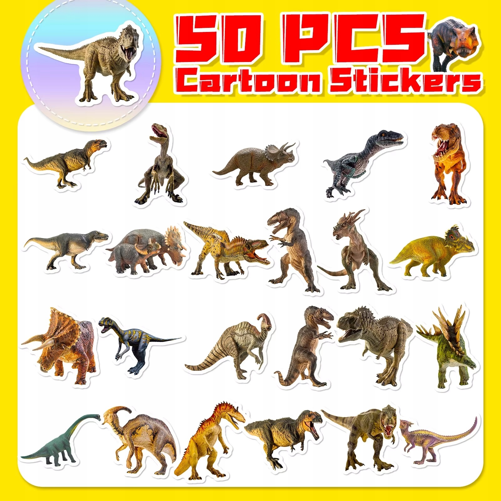 Naklejki kolorowe Dinozaury mix – 50 naklejek