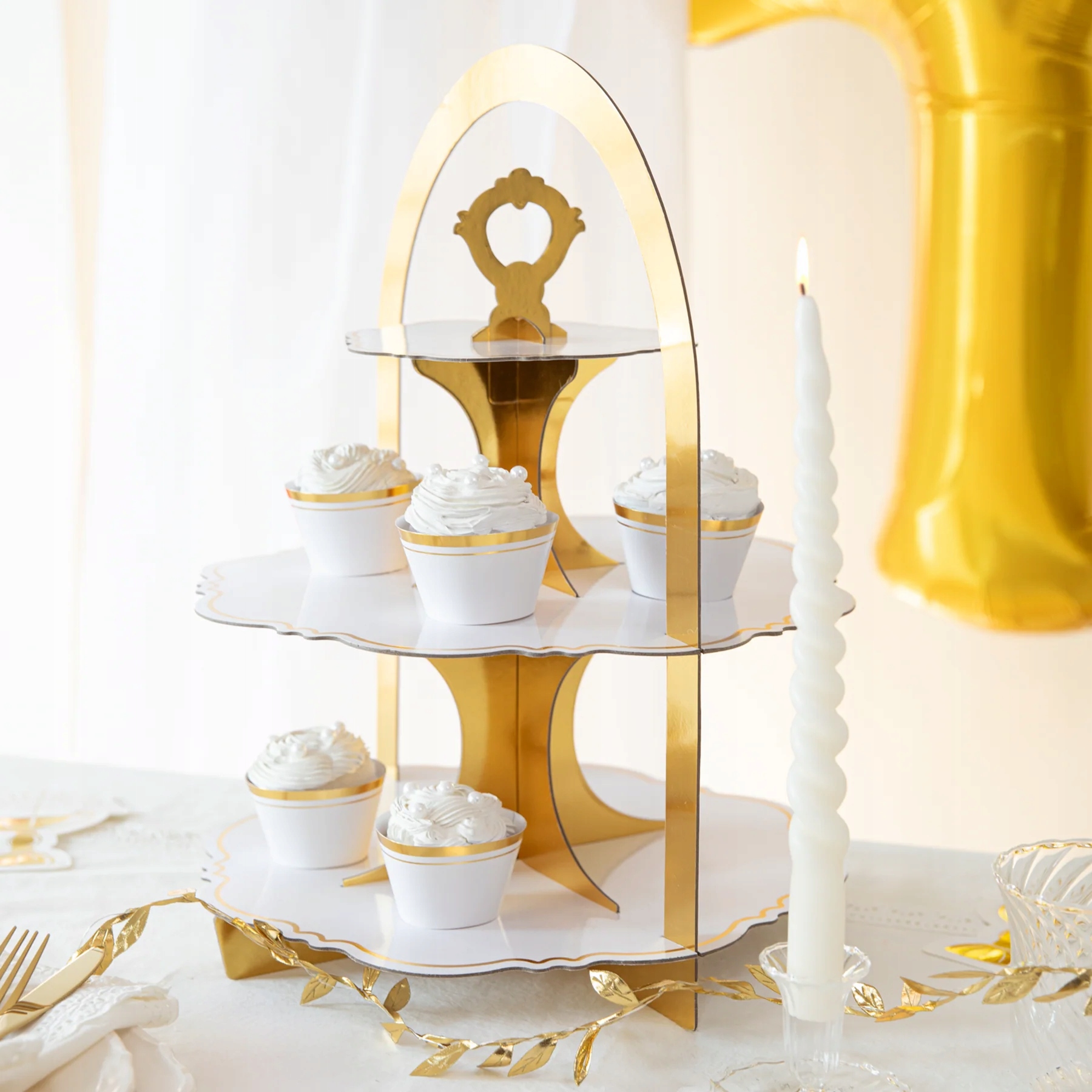 Patera na ciastka babeczki biało – złota papierowa