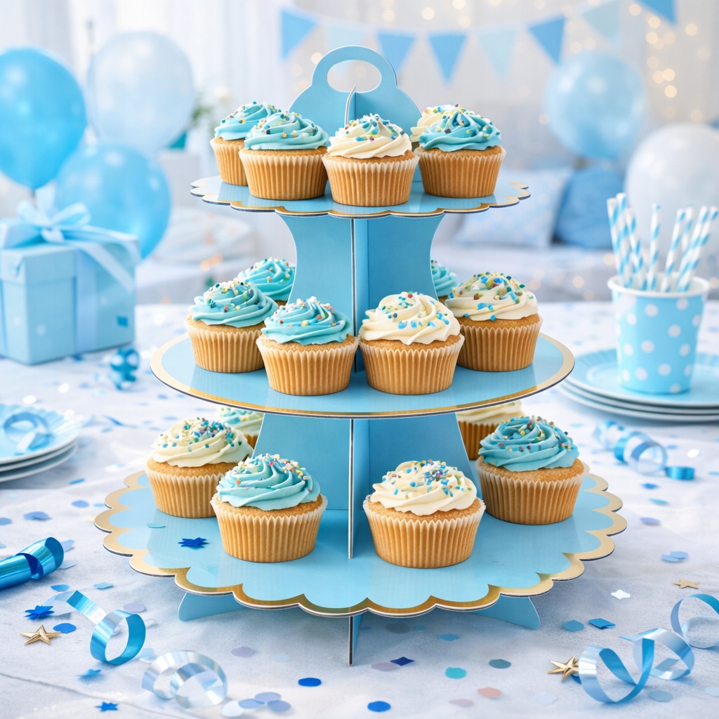 Patera na ciastka babeczki niebieska papierowa Urodziny