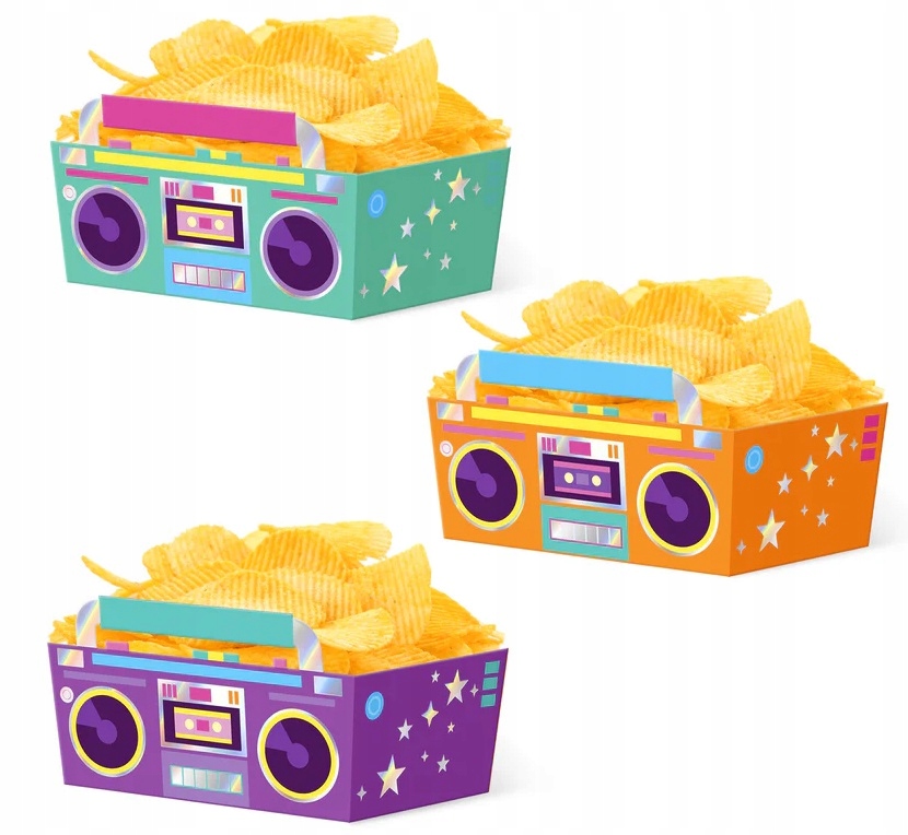 Pudełka papierowe na chipsy Retro Disco – 3 sztuki