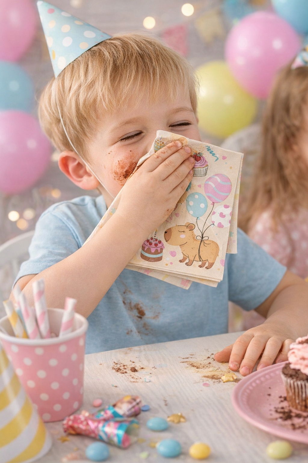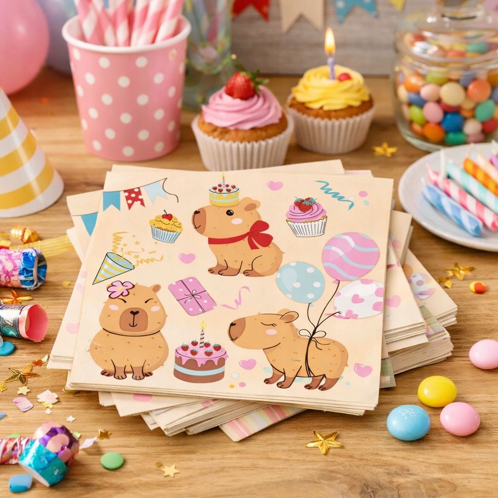 Serwetki z motywem Kapibary to praktyczny i uroczy dodatek na urodziny, przyjęcia i imprezy okolicznościowe.