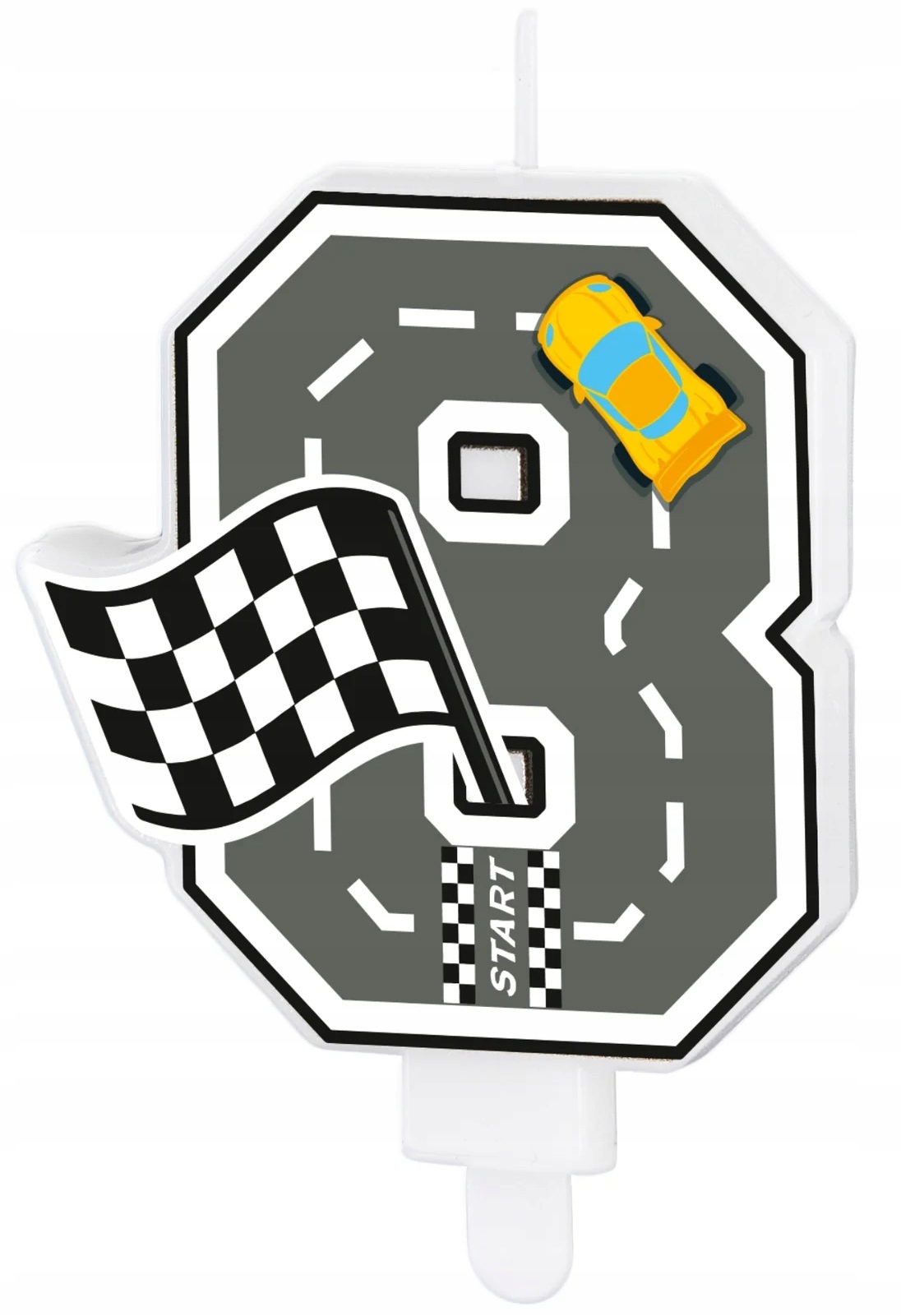 Świeczka na tort cyfra 8 „Wyścigówka” – 1 sztuka