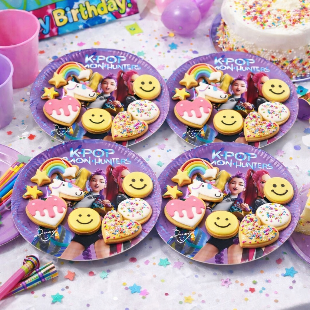 Talerzyki z motywem K-POP Demon Hunters to praktyczny i stylowy dodatek na urodziny, przyjęcia i imprezy okolicznościowe.