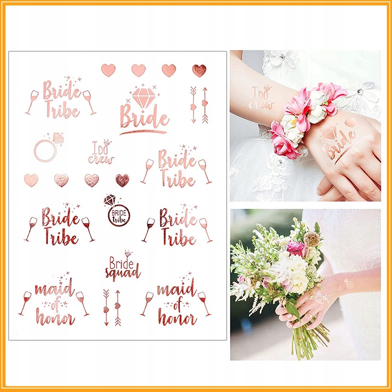⭐ Zestaw zawiera tatuaże zmywalne w kolorze różowego złota