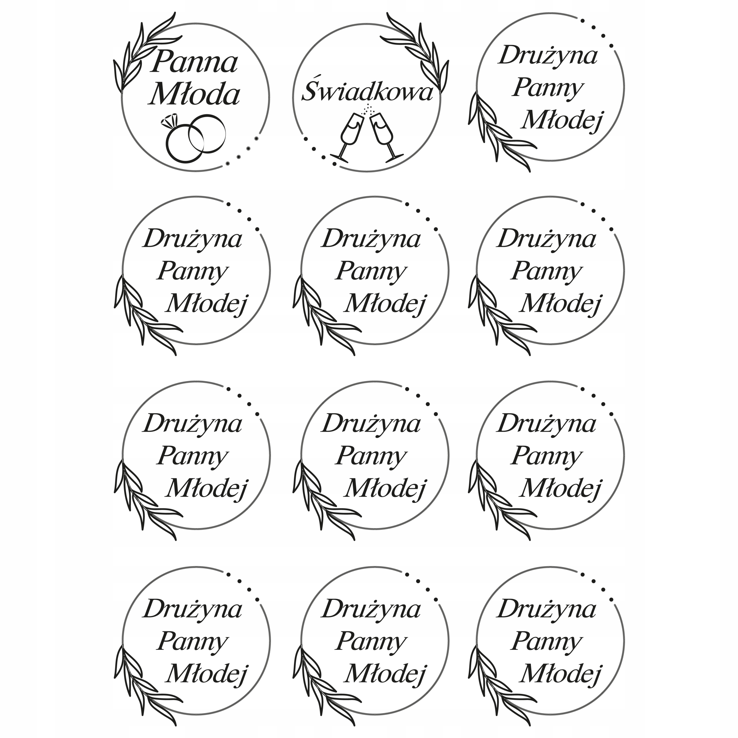 - Drużyna Panny Młodej ( 10 sztuk)