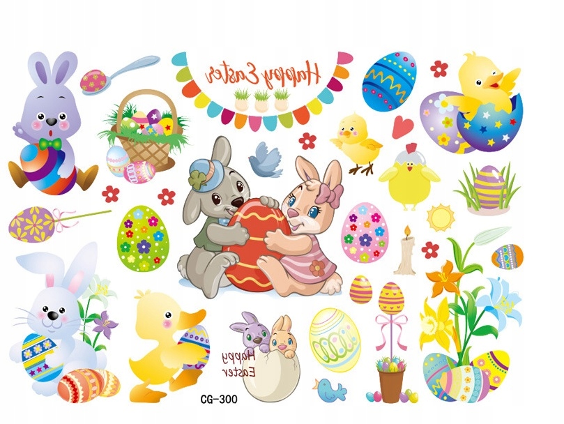 Tatuaże zmywalne „Wielkanoc” – 1 arkusz