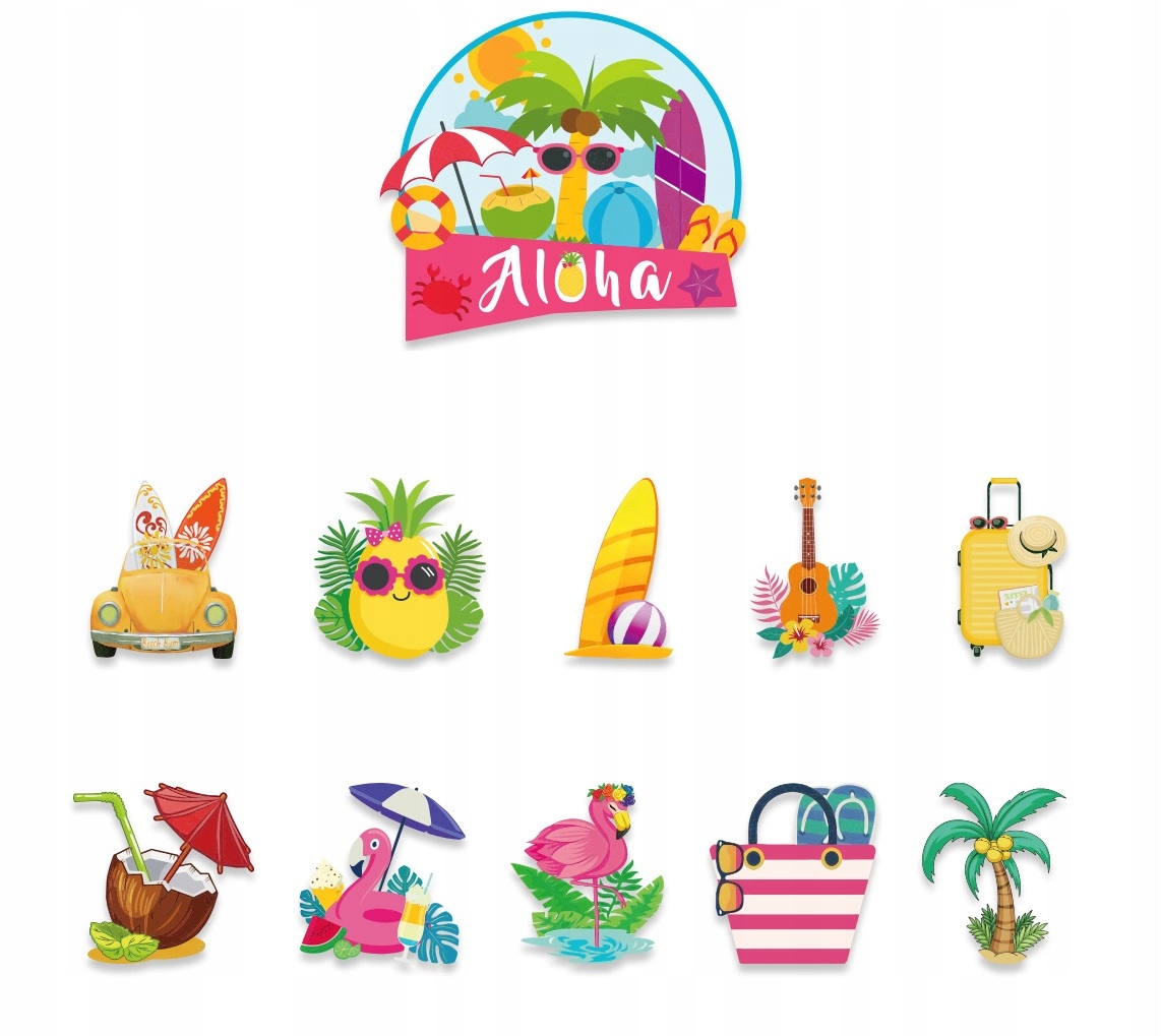 ⭐ Topper na tort „Aloha”- Wymiary około 10×12 cm- 1 sztuka