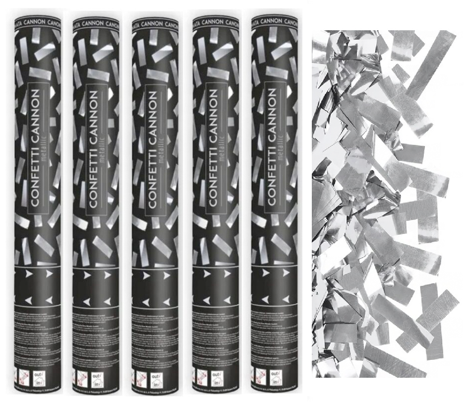 ⭐ Tuba strzelająca metalicznym konfetti w kolorze srebrnym