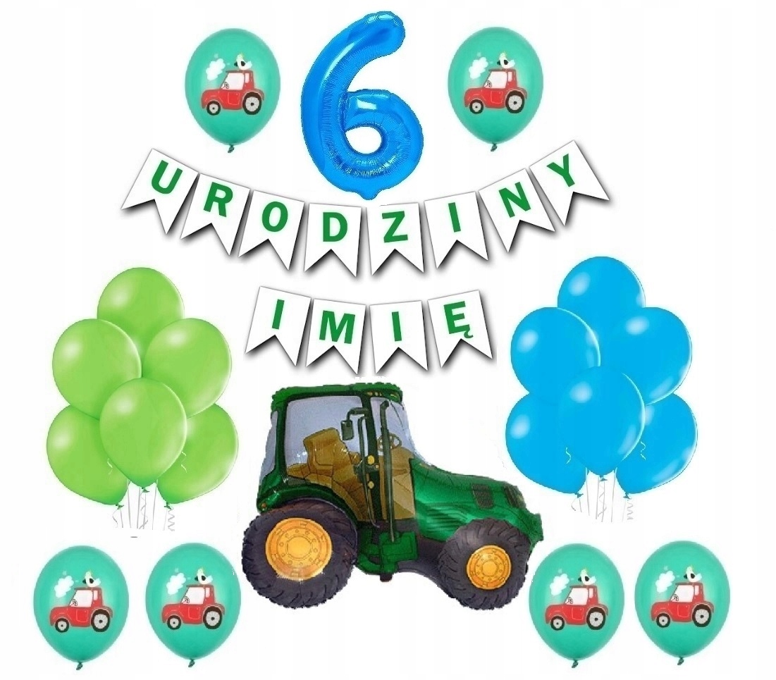 ⭐ Balony lateksowe zielone „Traktor” – Wielkość około 30 cm – 6 sztuk