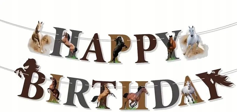 ⭐ Baner Happy Birthday „Konie” – Wysokość pojedynczej litery około 18 cm – 1 sztuka