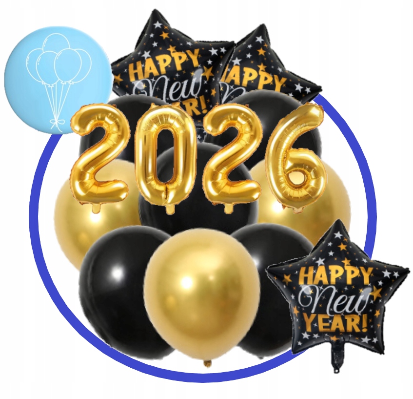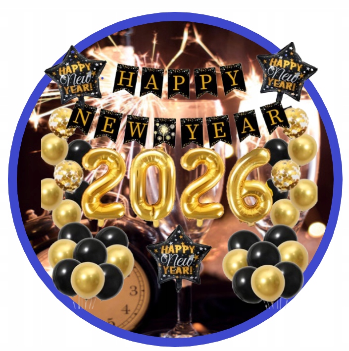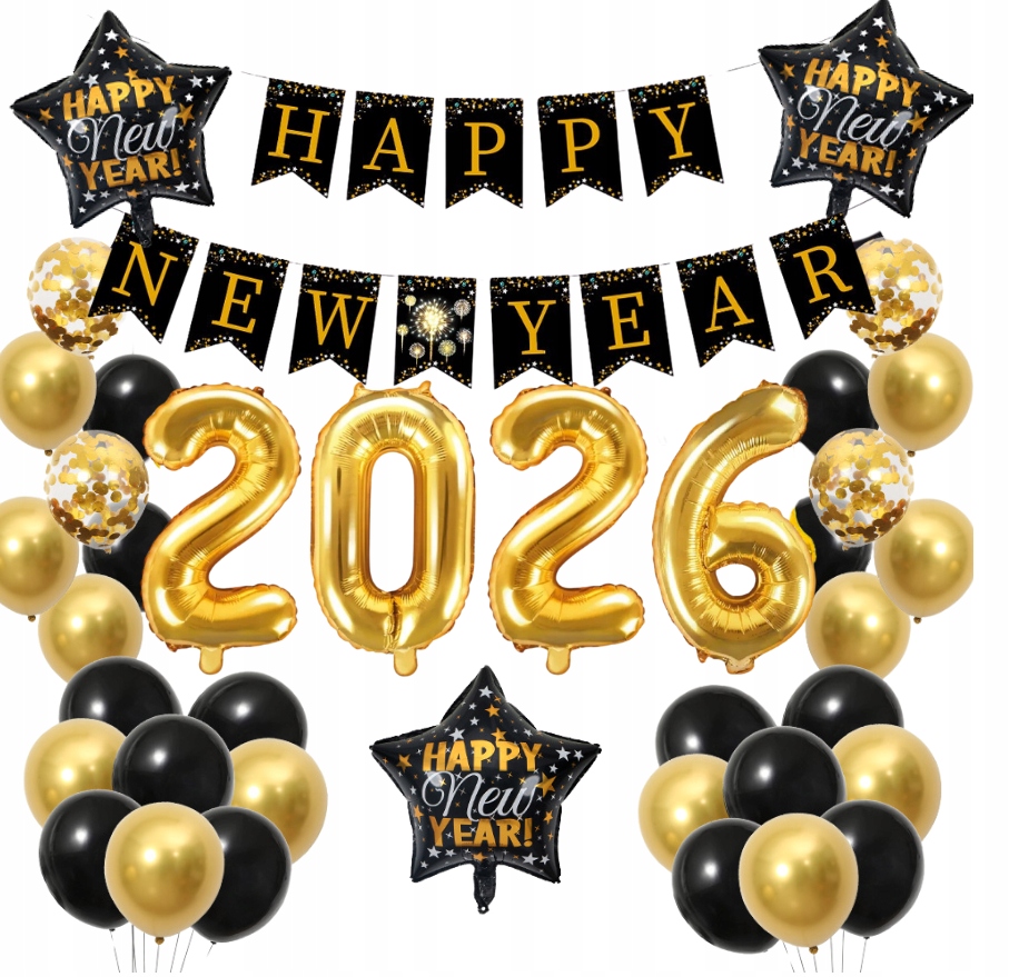 Zestaw Balony SYLWESTER 2026 Happy New Year Baner Nowy Rok