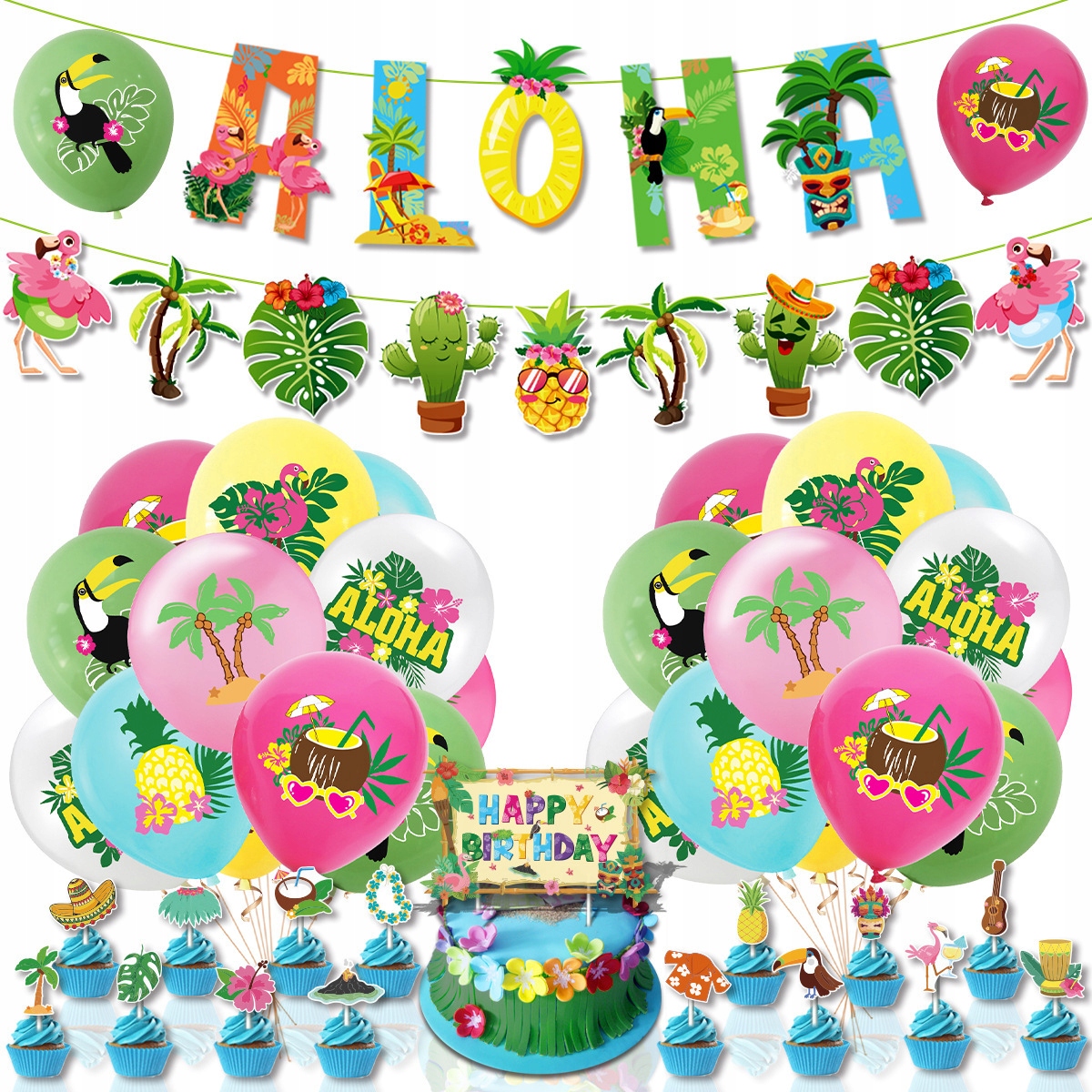 ⭐ Topper Happy Birthday „Aloha”- Wymiary około 15×10 cm- 1 sztuka