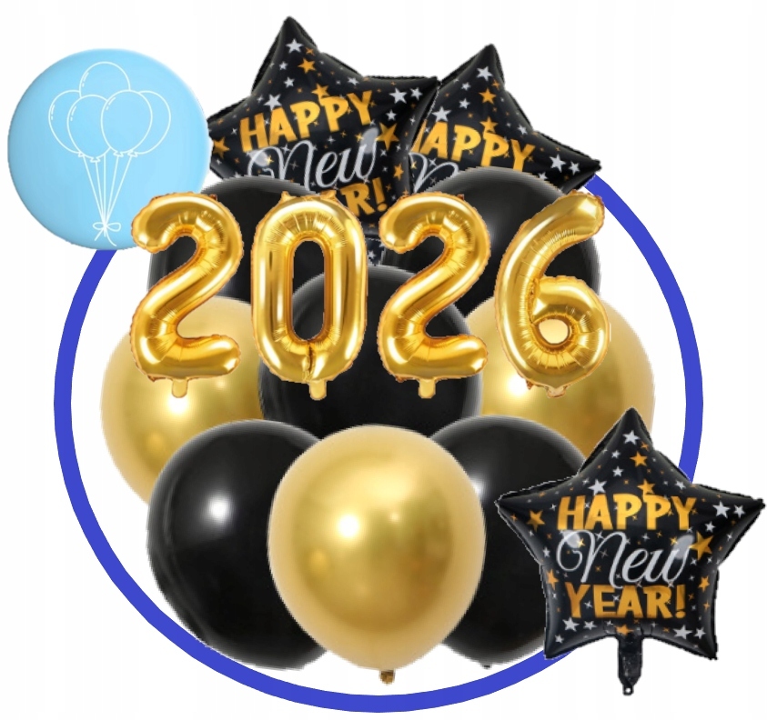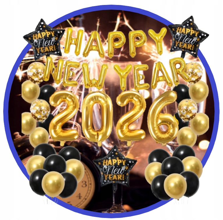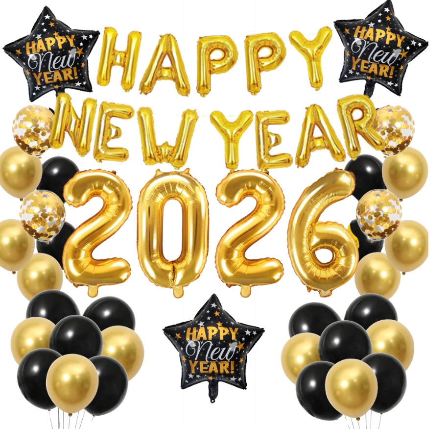 Zestaw Balony SYLWESTER 2026 Happy New Year Baner Nowy Rok