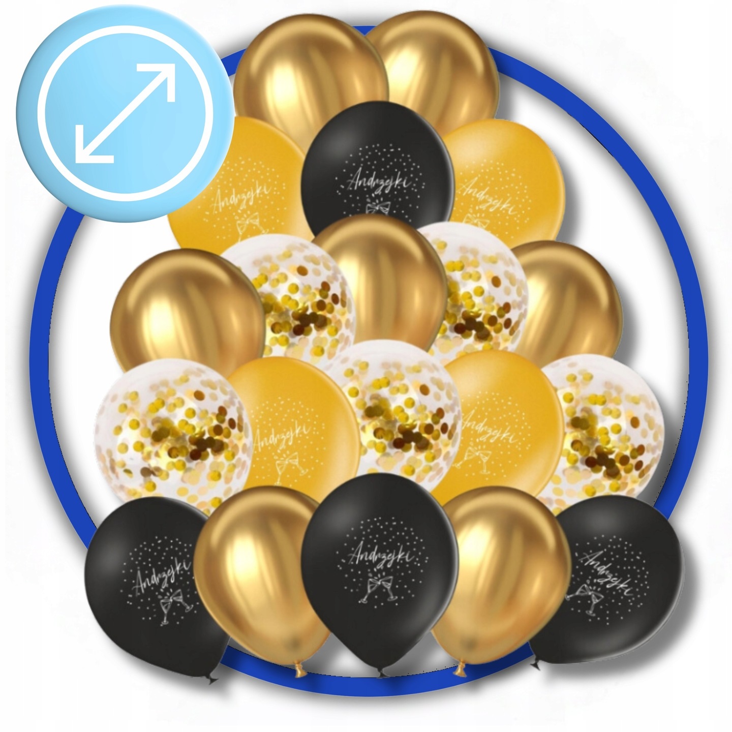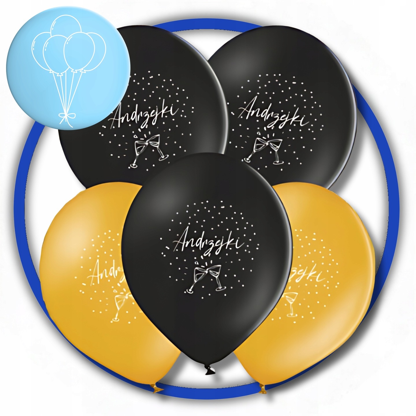 ✅ Balony złote z nadrukiem „Andrzejki”: Wielkość około 30 cm – 5 sztuk