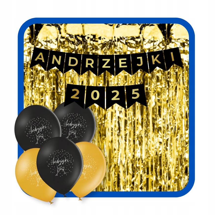 Zestaw dekoracyjny Andrzejki 2025 Balony kurtyna baner napis czarne złote