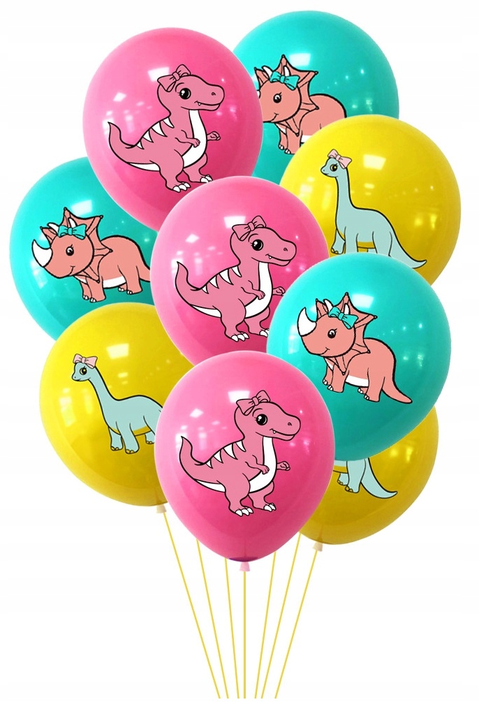 ⭐ Balony różowe z nadrukiem „Dinozaur” – wielkość około 30 cm – 6 sztuk