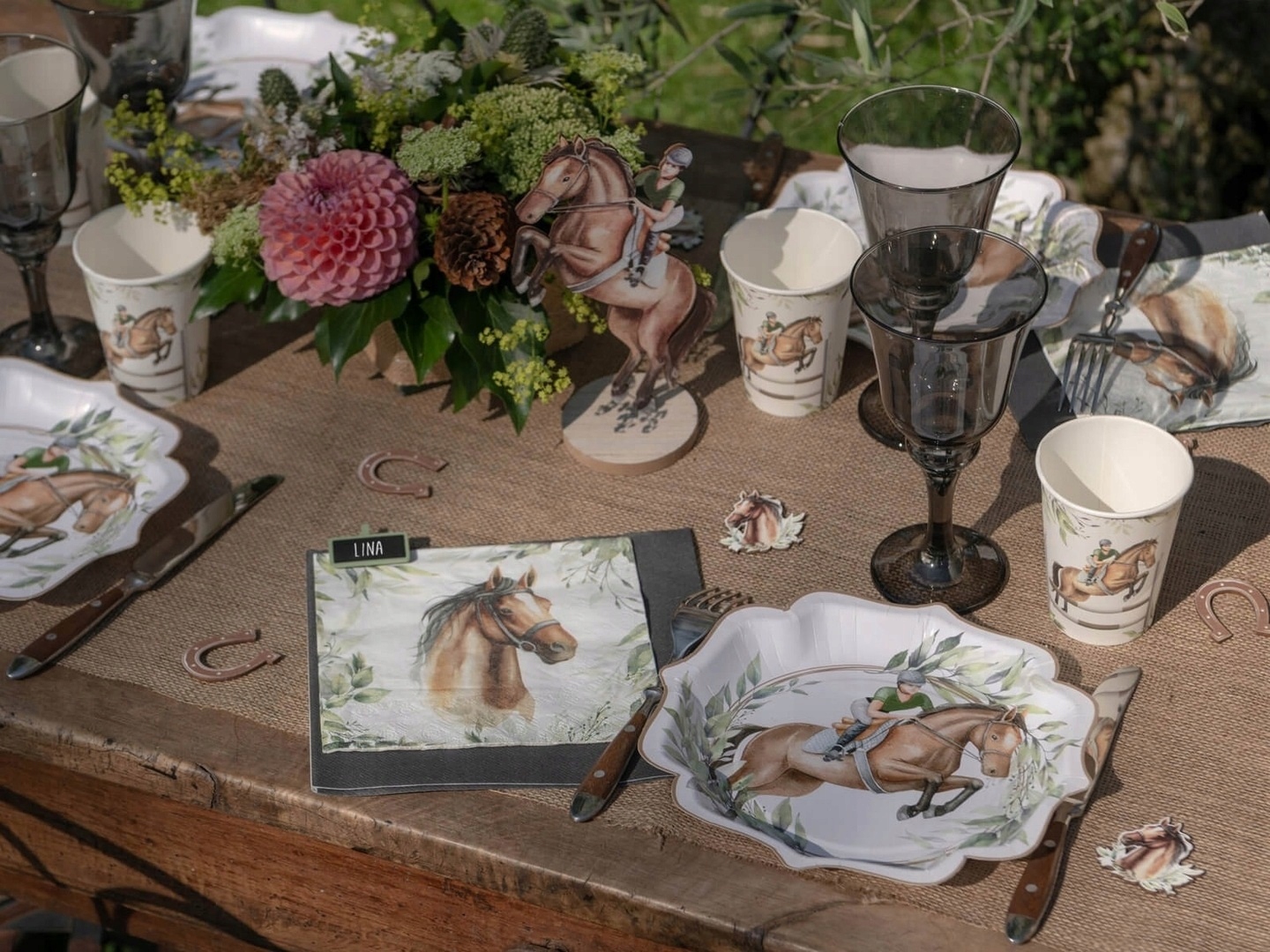 ⭐ Talerzyki papierowe „Jazda Konna” – Wielkość około 21×21 cm – 10 sztuk