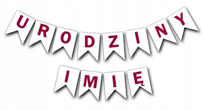 ✅ 8 flag tworzących napis „URODZINY” + jedno dowolnie wybrane imię, np. URODZINY ANI, URODZINY ZOSI